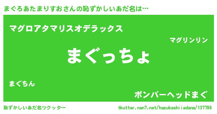 | 意味不明あだ名 | 『まぐろあたまりすおフォーエバー』 |