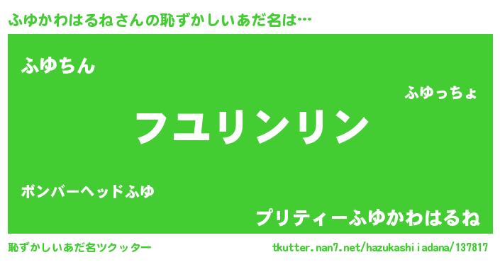 | ポケモン風あだ名 | 『フーユイ』『ヒフユカワハルネ』 |