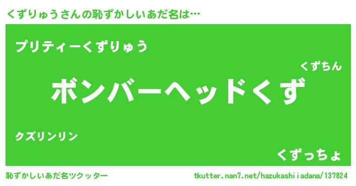 | ヒーロー風カッコイイあだ名 | 『天空の使者くずりゅう』『仮面クズダー』 |