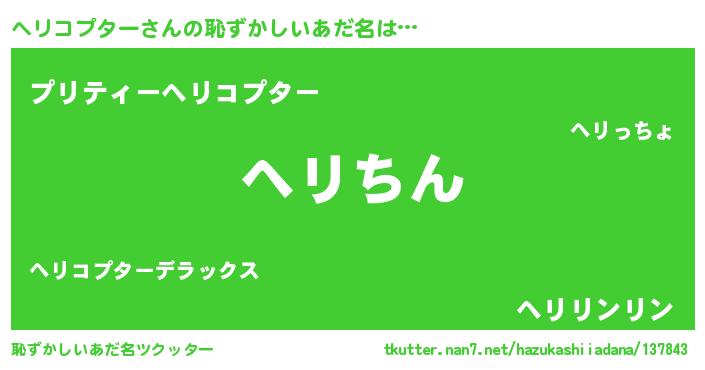 | 胡散臭い通販商品みたいなあだ名 | 『来世でも幸せになれる健康食品…その名も「ヘリコプター」』 |