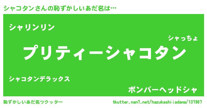 | ヒーロー風カッコイイあだ名 | 『スーパーシャコタン』『魔戒騎士シャ』 |