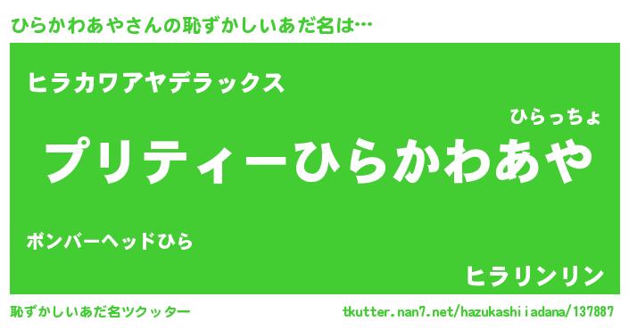 | 男性向けラノベタイトル風あだ名 | 『この素晴らしい世界にひらかわあやを!』 |