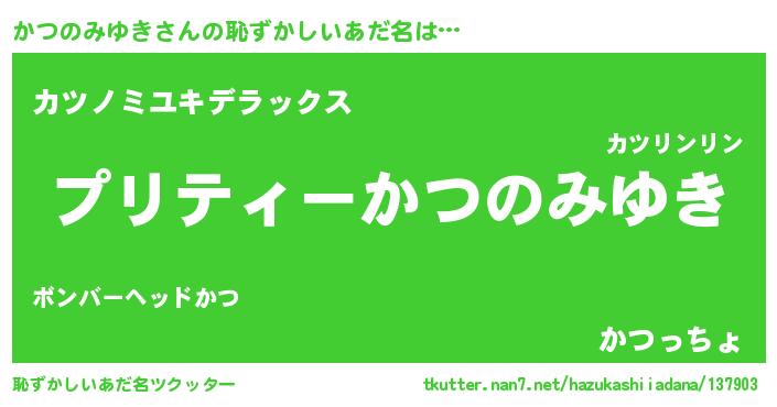 | ヒーロー風カッコイイあだ名 | 『仮面カツダー』『スーパーカツノミユキ』 |