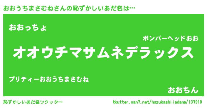 | 意味不明あだ名 | 『自称おおうちまさむね』 |