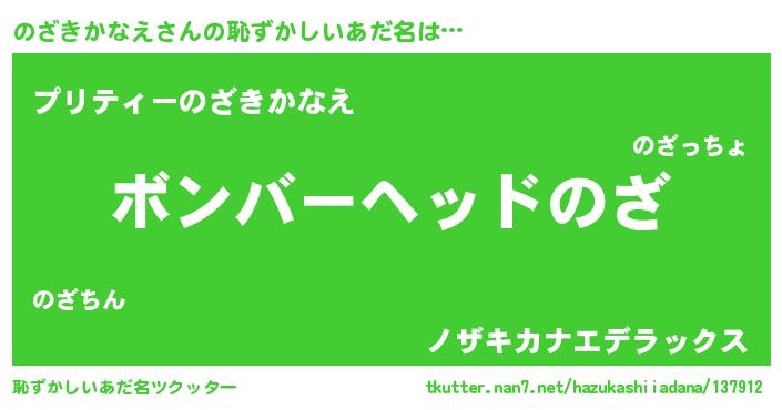 | 男性向けラノベタイトル風あだ名 | 『おまえをオタクにしてやるから、俺をのざきかなえにしてくれ! 』 |