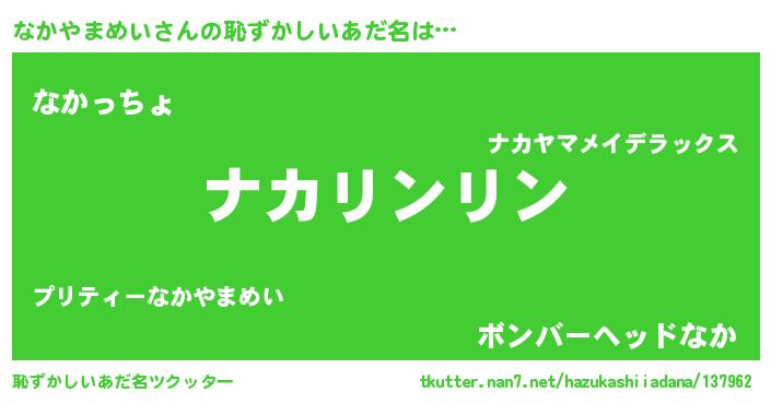 | 男性向けラノベタイトル風あだ名 | 『なかやまめいの嫁は女の子じゃないと思った?』 |