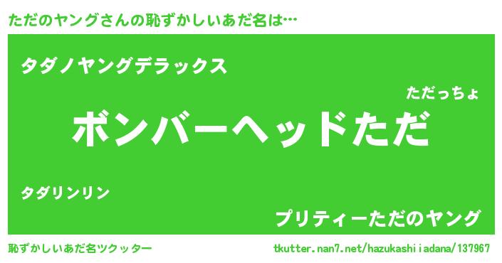 | ヘコむあだ名 | 『ただもー』『豆乳』『ただを』 |
