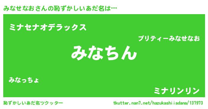 | 意味不明あだ名 | 『住所不定無職みなせなお(81歳)』 |