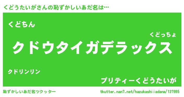 | ヘコむあだ名 | 『くどうたいが(震え声)』『くどふぇ~』 |