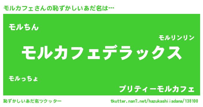 | 意味不明あだ名 | 『自称モルカフェ』『永久保存モルカフェ』 |