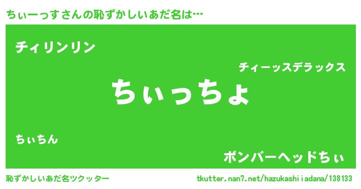 | ヘコむあだ名 | 『なまこ酢』『ちぃを』『ちぃもー』 |