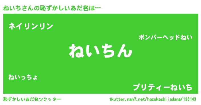| ヘコむあだ名 | 『ねいち(爆)』『ねいっ子』 |