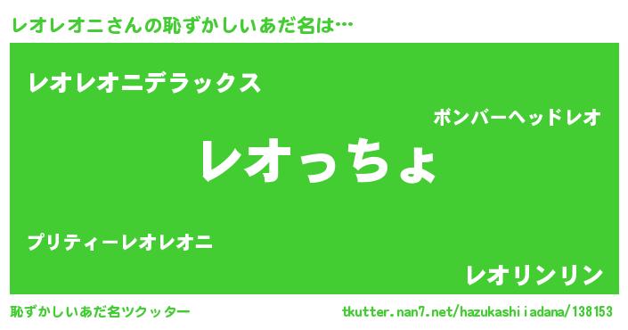 | ファンタジー風あだ名 | 『エターナルレオレオニー』『ゼレオトゥ』 |