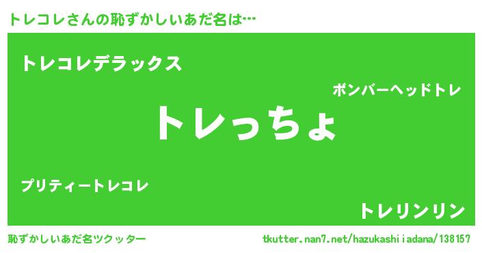 | 意味不明あだ名 | 『トレコレフォーエバー』『自称トレコレ』 |