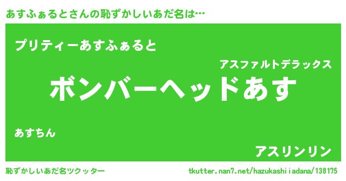 | ヘコむあだ名 | 『あすふぇ~』『あすぷりん』 |