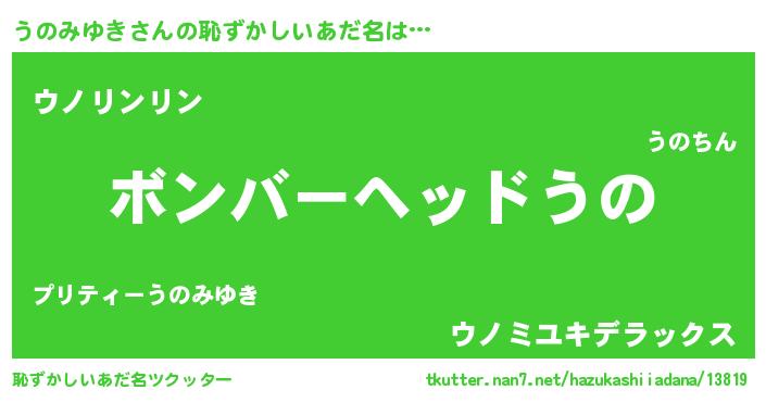 | ヘコむあだ名 | 『うのっちょ』『うのみゆき(遠い目)』 |