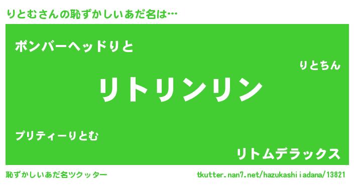 | 意味不明あだ名 | 『とにかく怪しいりとむ』『自称りとむ』 |