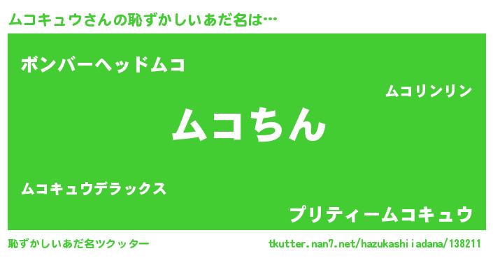 | ヒーロー風カッコイイあだ名 | 『ネオムコキュウ』『愛の使者ムコキュウ』 |