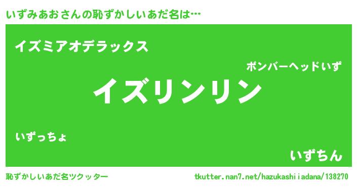 | ヘコむあだ名 | 『いずぷりん』『いずみあお(苦笑)』 |