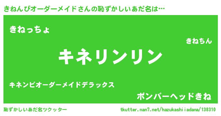 | ポケモン風あだ名 | 『キーネイ』『ヒキネンビオーダーメイド』 |
