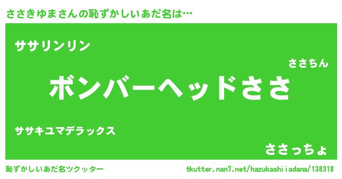 | ヒーロー風カッコイイあだ名 | 『友情の使者ささきゆま』『暗黒騎士ササ』 |