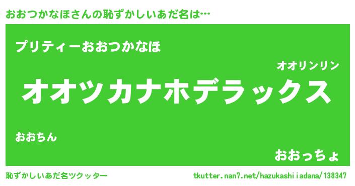 | 意味不明あだ名 | 『自称おおつかなほ』 |