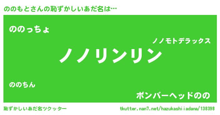 | 男性向けラノベタイトル風あだ名 | 『ののもとに滅ぼされるだけの簡単なお仕事です』 |