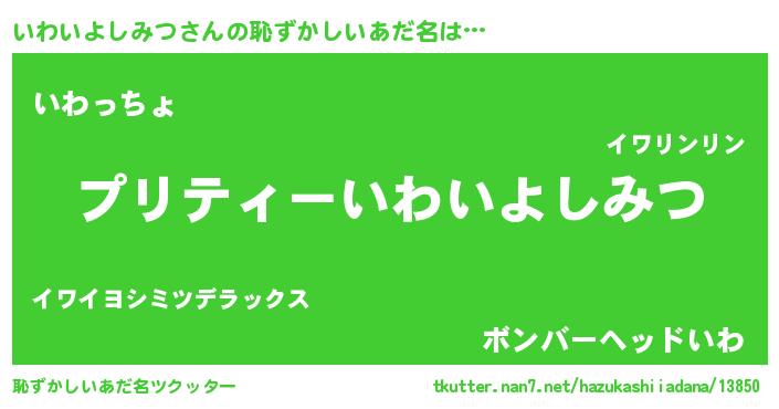 | ヘコむあだ名 | 『いわにー』『つくし』『いわぷりん』 |