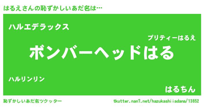 | ヘコむあだ名 | 『はるえ(遠い目)』『はるふぇ~』 |