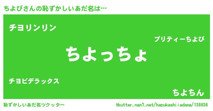 | 意味不明あだ名 | 『めかぶ科ちよび属』『永久保存ちよび』 |