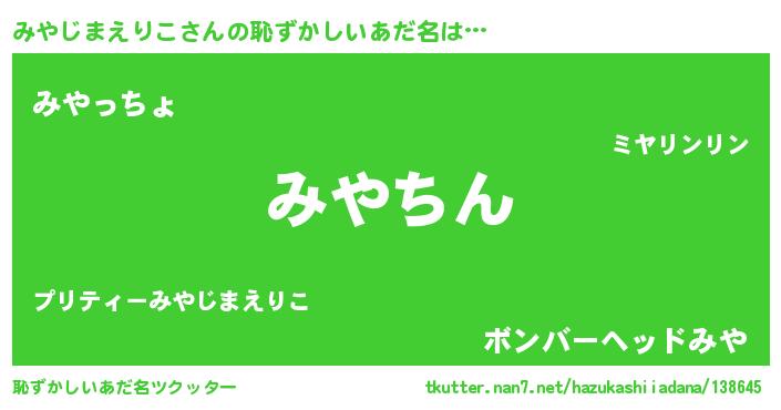 | 意味不明あだ名 | 『永久保存みやじまえりこ』 |