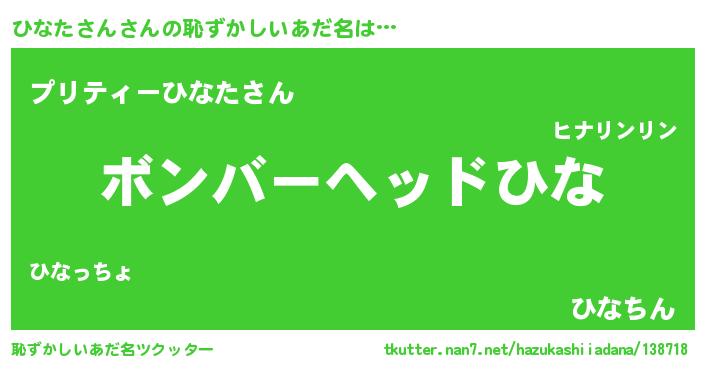 | ヒーロー風カッコイイあだ名 | 『慈愛の使者ひなたさん』『仮面ヒナダー』 |