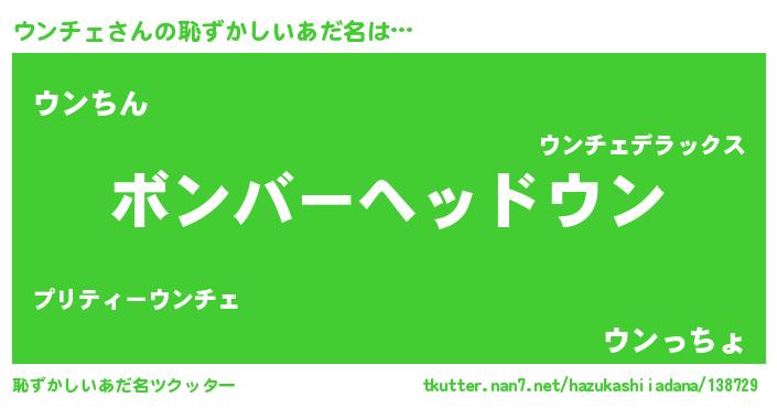 | ヒーロー風カッコイイあだ名 | 『慈愛の使者ウンチェ』『ネオウンチェ』 |