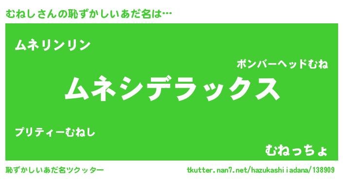 | 男性向けラノベタイトル風あだ名 | 『Re:むねしから始める異世界生活』 |