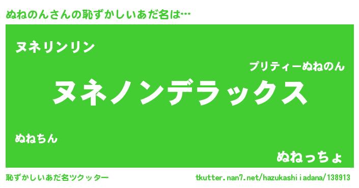 | 男性向けラノベタイトル風あだ名 | 『ヌネノンスレイヤー』『緋弾のヌネノン』 |
