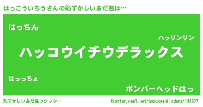 | 意味不明あだ名 | 『自称はっこういちう』 |