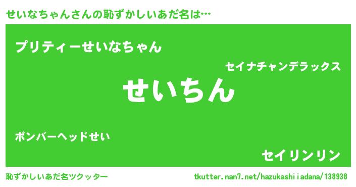 | ヘコむあだ名 | 『せいなちゃん(笑)』『せいもー』 |