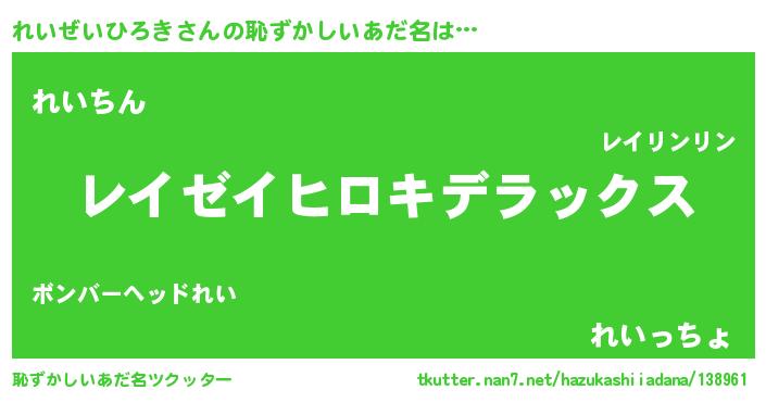 | 意味不明あだ名 | 『自称れいぜいひろき』 |