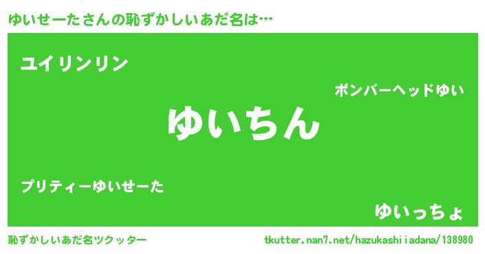 | ポケモン風あだ名 | 『ゼニユイ』『ヒユイセータ』 |