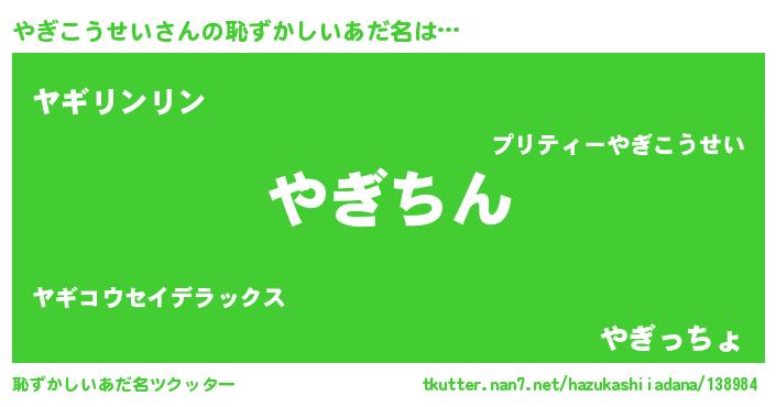 | ヘコむあだ名 | 『やぎこうせい(笑)』『やぎっぺ』 |