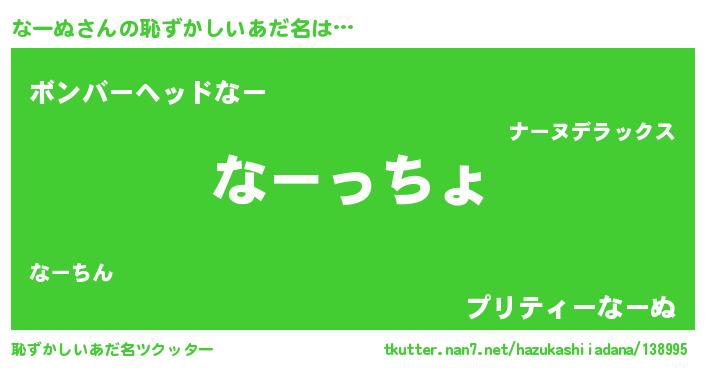 | ヒーロー風カッコイイあだ名 | 『ウルトラなーぬマン』『スーパーナーヌ』 |