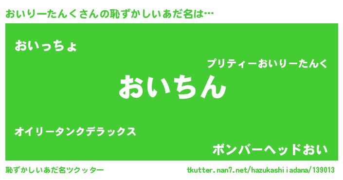 | ヒーロー風カッコイイあだ名 | 『仮面オイダー』『ネオオイリータンク』 |