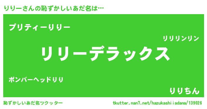| ヘコむあだ名 | 『りりもー』『りりー(遠い目)』 |