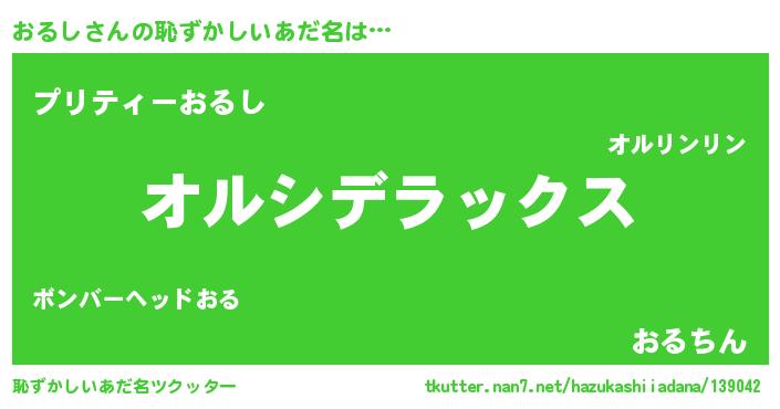 | ヘコむあだ名 | 『おるふぇ~』『おるし(笑)』 |