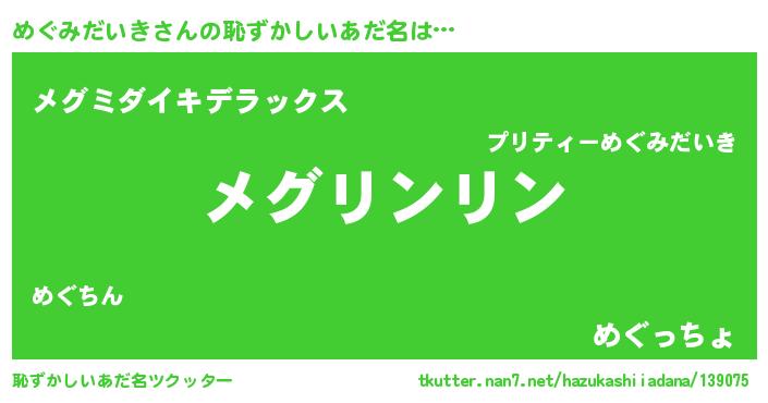 | 意味不明あだ名 | 『とにかく怪しいめぐみだいき』 |
