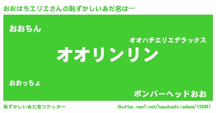 | 意味不明あだ名 | 『とにかく怪しいおおはちエリエ』 |