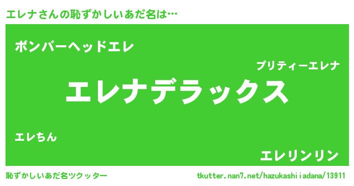 | ヒーロー風カッコイイあだ名 | 『究極戦士エレナ』『仮面エレダー』 |