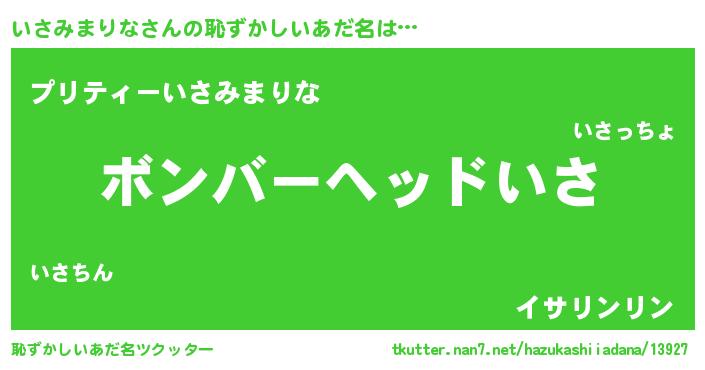 | 男性向けラノベタイトル風あだ名 | 『この素晴らしい世界にいさみまりなを!』 |