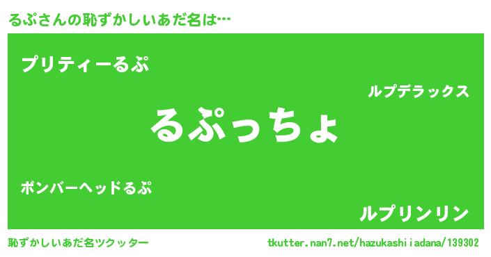 | ヘコむあだ名 | 『豆乳』『るぷふぇ~』『るぷを』 |