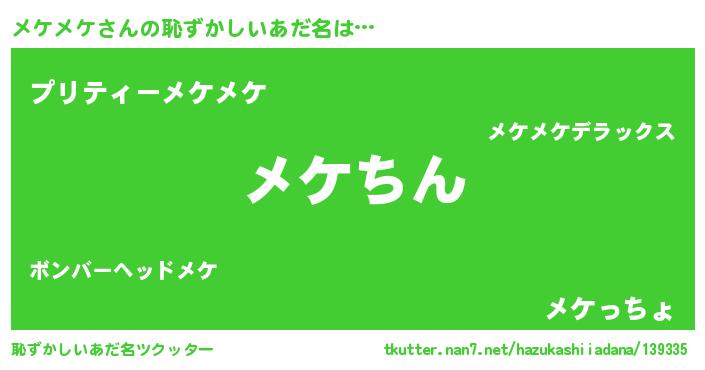 | ヘコむあだ名 | 『メケメケ(遠い目)』『メケにー』 |